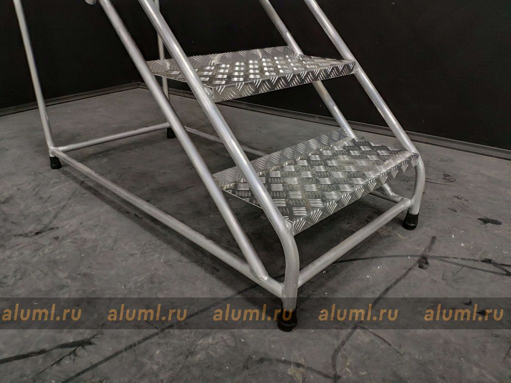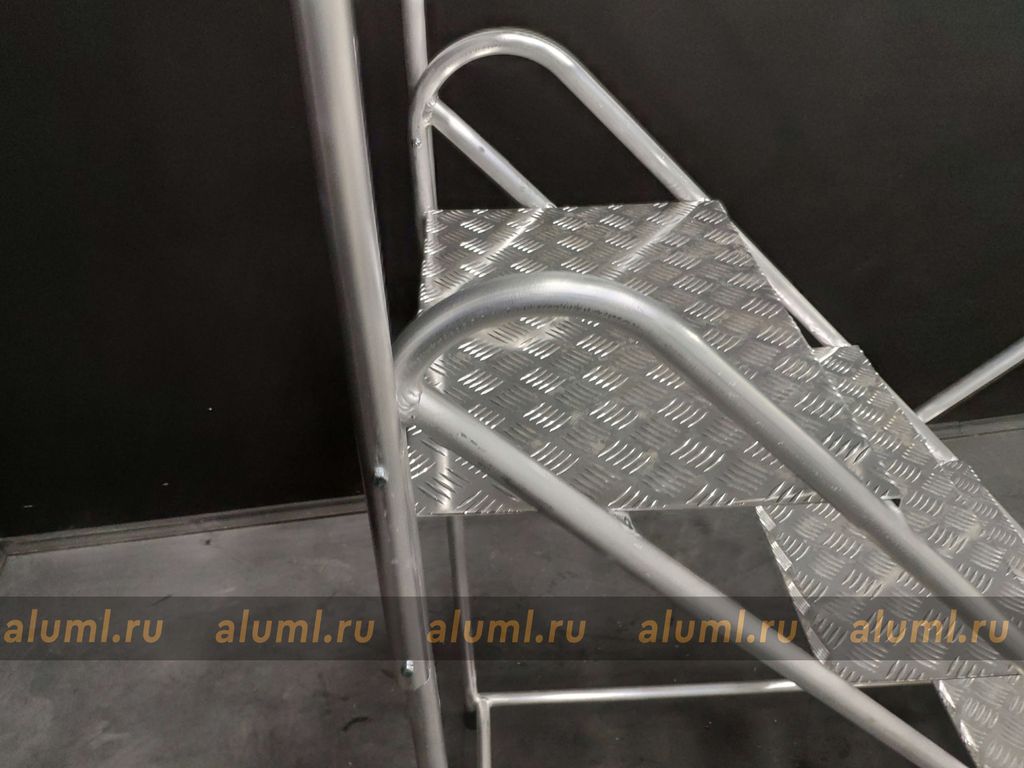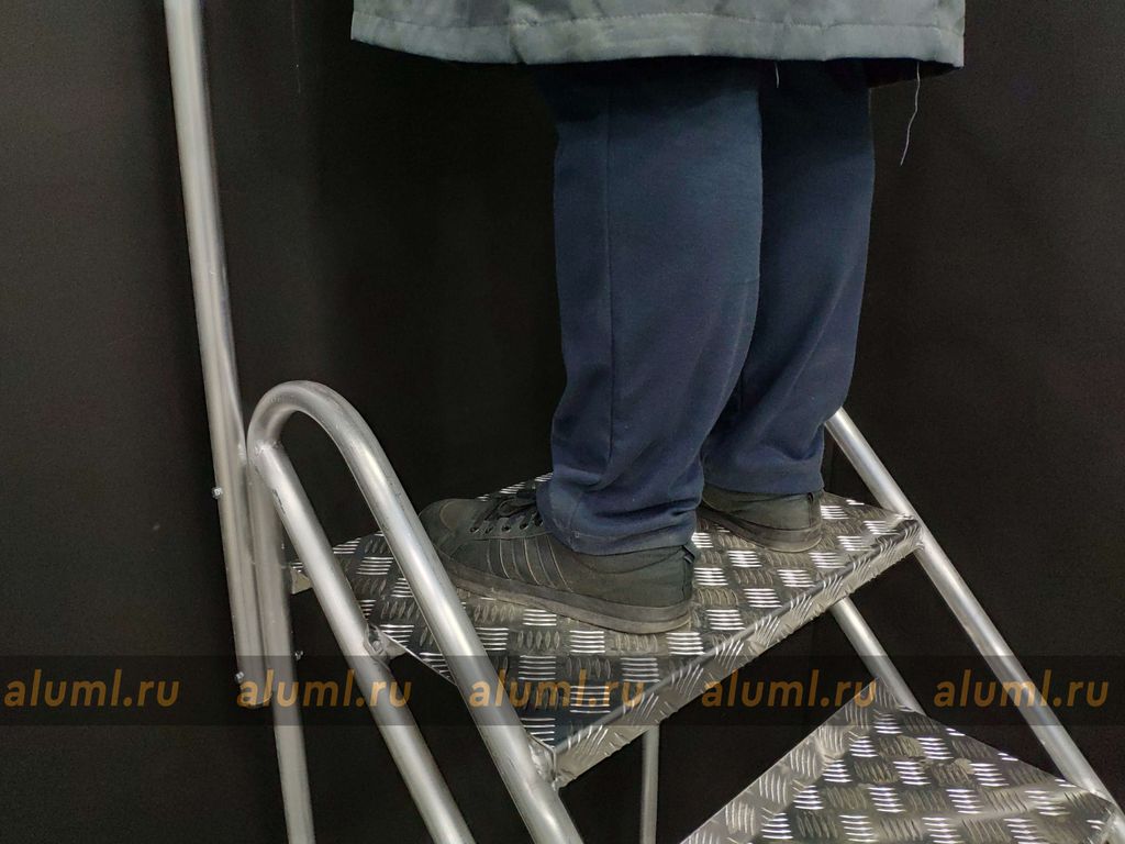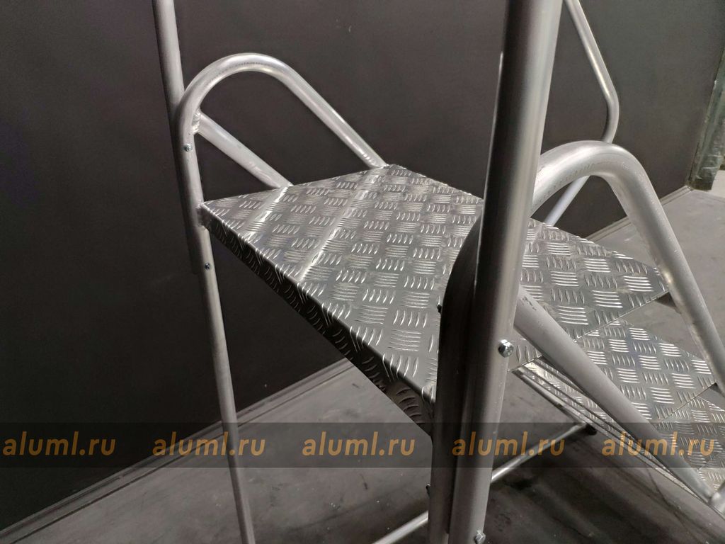 Монтажная подставка - устойчивая и легкая конструкция для проведения любых работ на небольших высотах. Комфортная верхняя площадка размером – 305 х 520 мм. Безопасный подъем и спуск по ступеням глубиной 240 мм из рифлёного листового алюминия. Резиновые противоскользящие башмаки. Легкая и прочная сварная конструкция. Возможна дополнительная комплектация:
