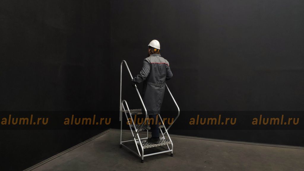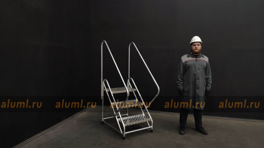 • Ступени размером 600290 мм изготовлены из рифленого алюминиевого листа, обеспечивая надежное сцепление при подъеме.