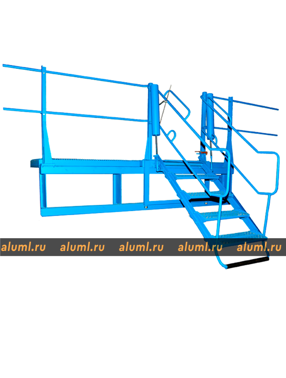 предназначен для удобного и безопасного доступа оператора на железнодорожную или автоцистерну с эстакады. Мостик переходной может, как стационарно крепится к эстакаде, так и иметь специальный механизм, позволяющий свободно двигаться вдоль эстакады. Это необходимо, когда в одном ж/д составе присутствуют цистерны различных типов. Расстояние, на которое может перемещаться мостик ограничено только размерами самой эстакады