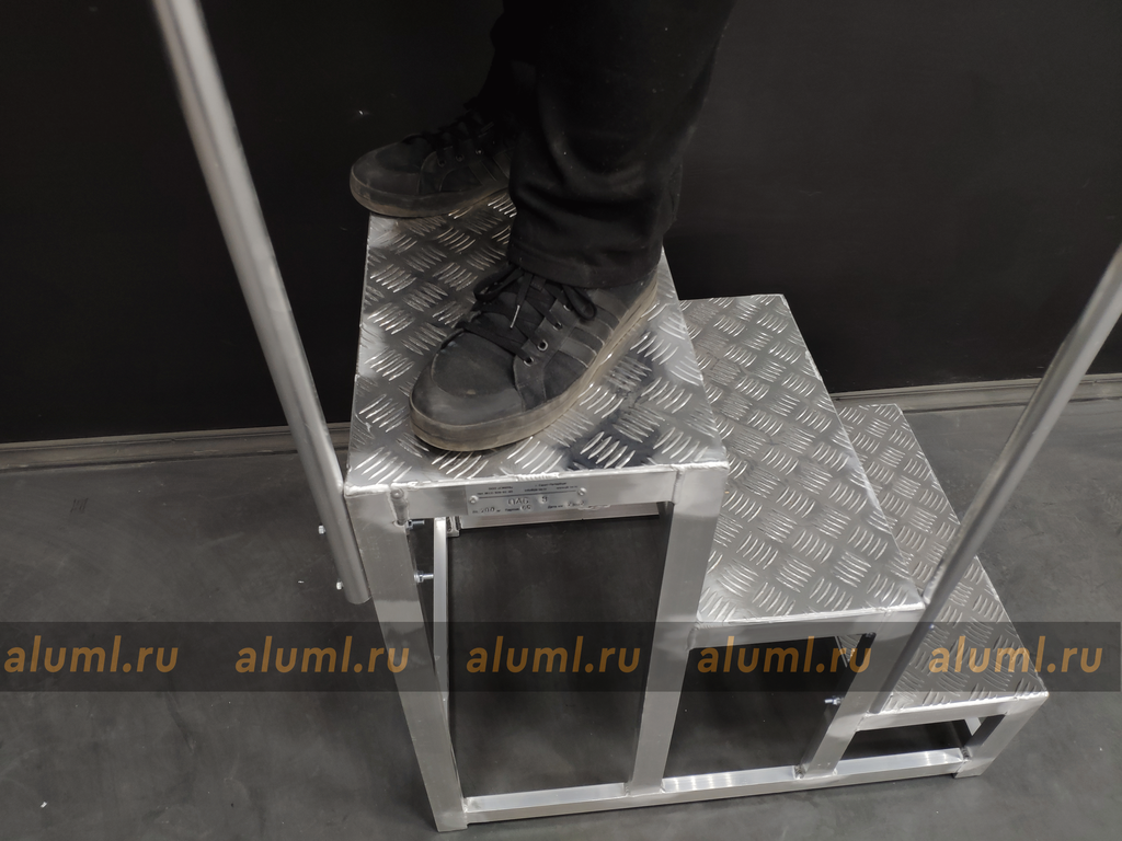 Ступени и площадка выполнены из рифленого алюминиевого листа.